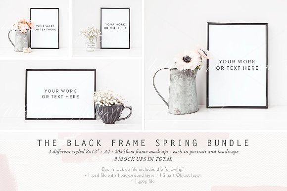If you are looking for some mock-ups for art prints, stationery, or mugs, Lucie from White Hart Co. is one of my absolute faves. A really beautiful, minimal, style that lets the product shine. I love these simple black frames* of hers if you are selling art or photography prints…